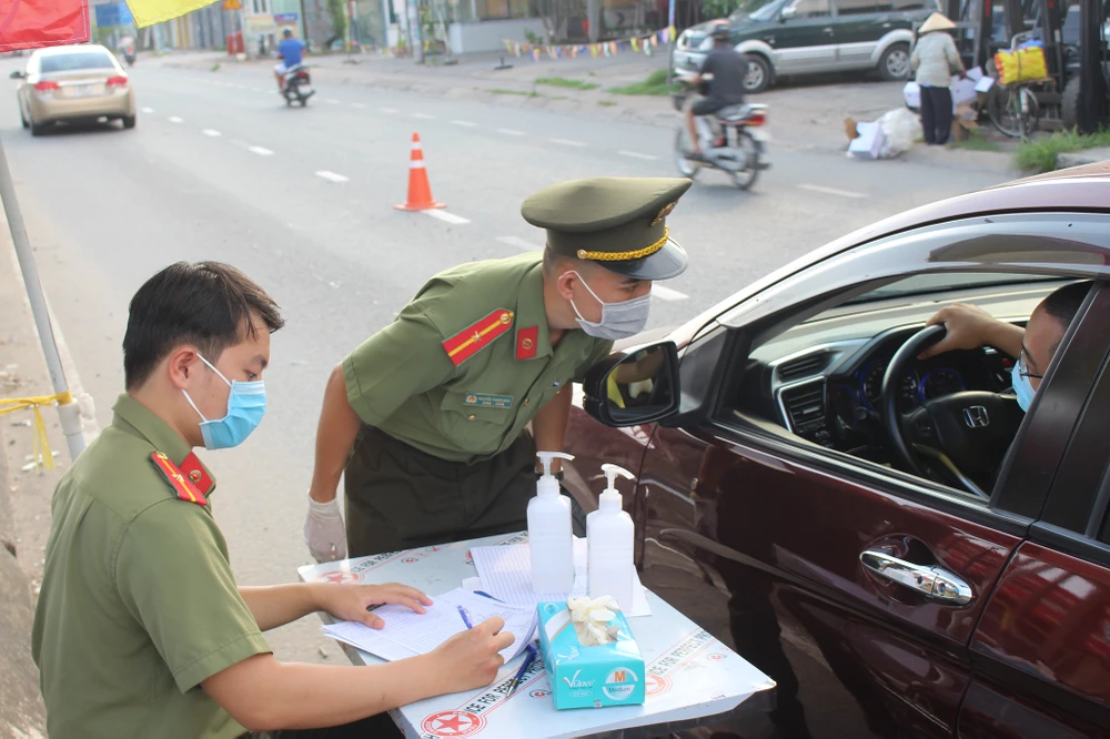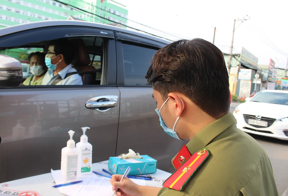 Các thông tin cá nhân, hành trình và số lượng người trên xe được lực lượng chức năng ghi lại vào sổ thống kê.