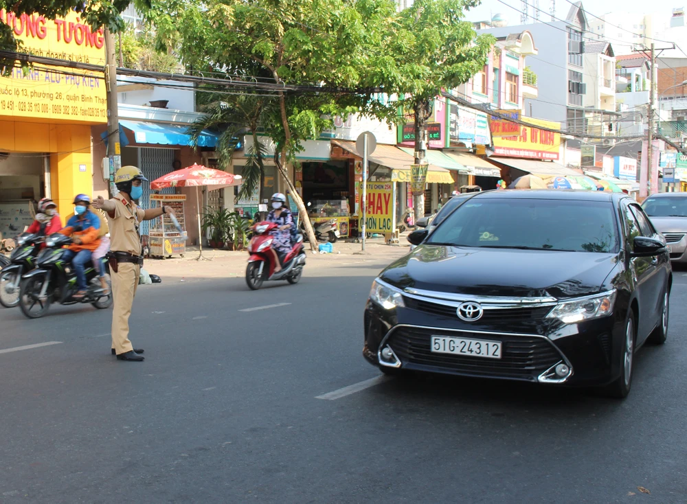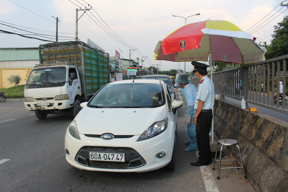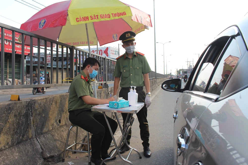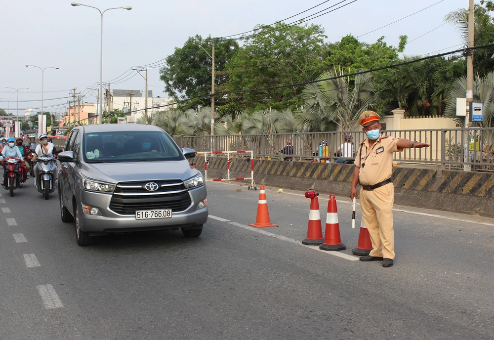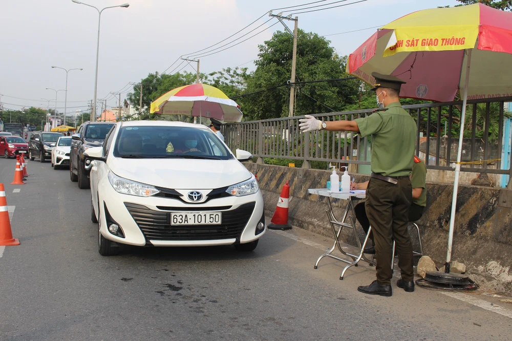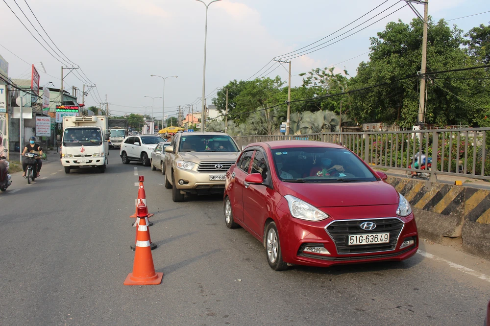 Chốt kiểm soát dịch bệnh COVID-19 trên quốc lộ 1K kiểm tra với hầu hết ô tô di chuyển từ hướng Bình Dương về TP.HCM.