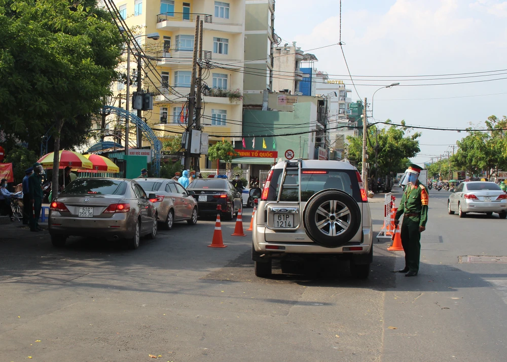 Ghi nhận vào khoảng 14 giờ chiều tại chốt kiểm soát y tế trên quốc lộ 1K, lực lượng chức năng vẫn duy trì chốt chặn và kiểm tra y tế với tất cả tài xế ô tô qua khu vực. Mặc dù nhiệt độ bên ngoài đang ở mức rất cao, tuy nhiên các nhân viên y tế, cảnh sát, thanh tra giao thông… vẫn tích cực làm việc.