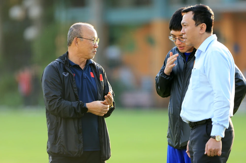 HLV Park Hang-seo và phó chủ tịch VFF Trần Quốc Tuấn mất sáu tháng để thương thuyết bản hợp đồng mới. ẢNH: NGỌC DUNG
