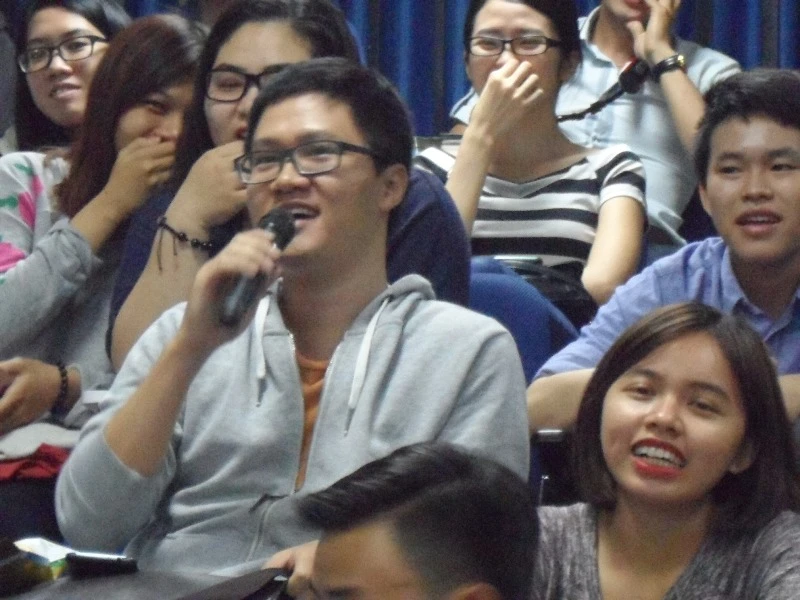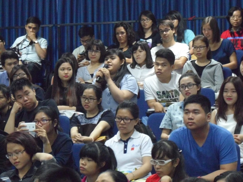Các bạn sinh viên đặt câu hỏi. Ảnh: NGUYỄN TRÀ