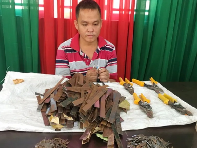 Nghi can Quang cùng tang vật bị thu giữ. Ảnh: VH