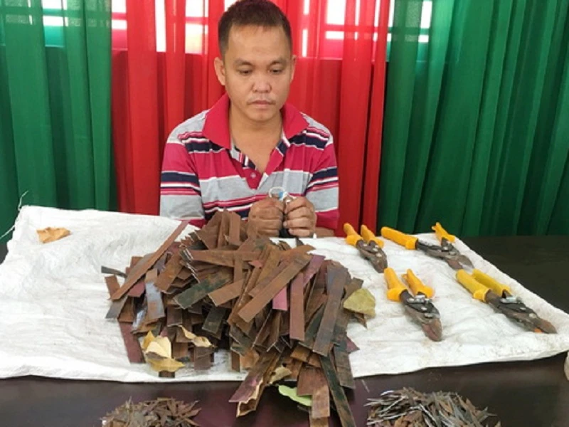Khám xét tiệm sửa xe máy của Quang tại ấp Long Khánh 1 (phường Tam Phước), lực lượng chức năng đã phát hiện 500 chiếc đinh hình rô, 400 thanh sắt dài khoảng 30 cm cùng rất nhiều vỏ, ruột xe máy cũ.