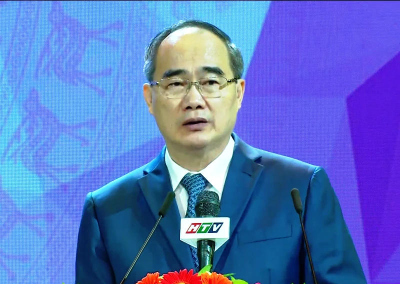 Bí thư Thành ủy TP.HCM Nguyễn Thiện Nhân trong lễ kỷ niệm 130 năm ngày sinh Chủ tịch Hồ Chí Minh. Ảnh: TÁ LÂM