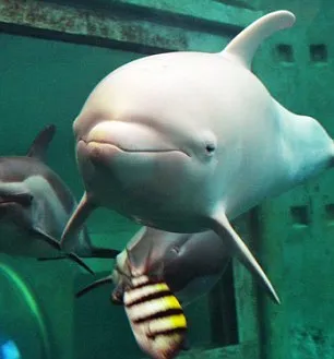 Viện này cũng cho biết họ đã cứu những con cá heo bị bạch tạng vì chúng không thể hòa hợp với đồng loại của mình ở biển – những con có màu xám đơn thuần.