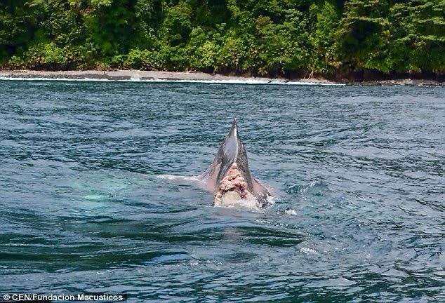 Những người nhìn thấy con cá voi tận mắt đã không khỏi kinh ngạc khi chứng kiến cảnh nó cố gắng bơi, lặn trên vùng biển phía Tây Colombia thuộc Thái Bình Dương. "Tuy nhiên, nó sẽ không thể chống chịu được lâu nữa vì chiếc đuôi đóng vai trò rất quan trọng trong việc bơi lội và lặn dưới đại dương" - nhà sinh vật học Cristian Bermudez cho biết.