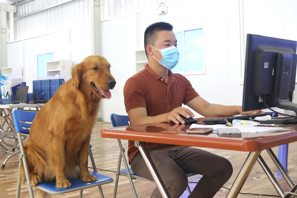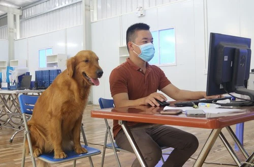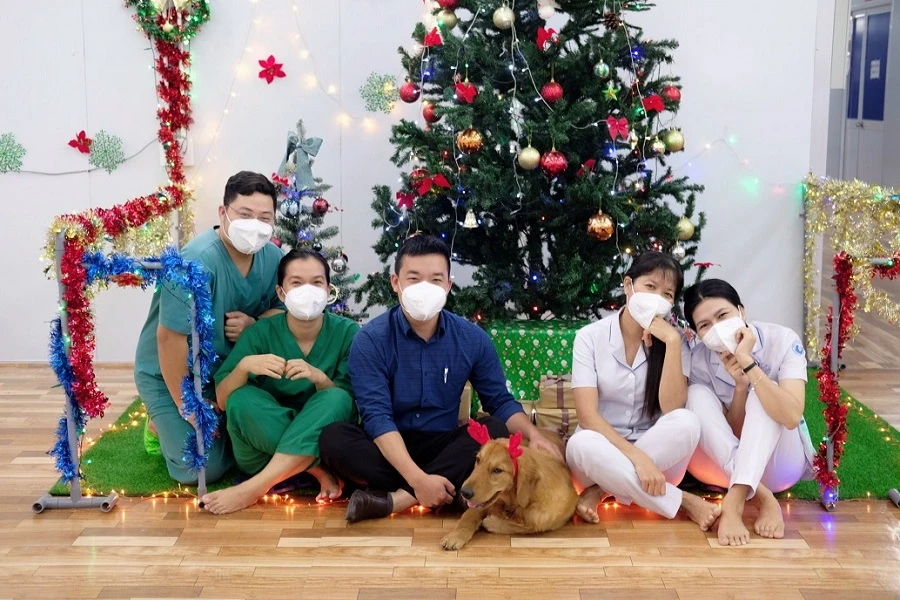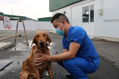 Đậu trở thành thành viên thân thiết của tất cả mọi người, tham dự các sự kiện tại các bệnh viện dã chiến. Ảnh: THẢO PHƯƠNG - TÚ NGÂN
