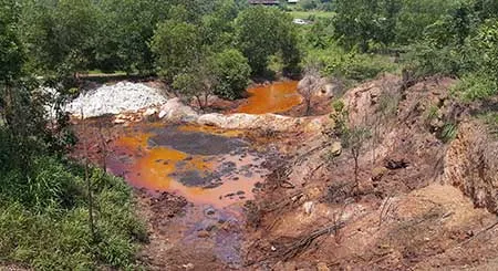 Theo ghi nhận của PV vào ngày 24-7, tại đây có ít nhất hai điểm đang đốt rác thải công nghiệp bốc khói nghi ngút và mùi khét rất khó chịu. Cạnh đó là hàng trăm bao tải được buộc kín vứt lăn lóc trên bãi cỏ. Một người dân cho biết các bao tải trên chứa mút xốp, cao su... những phế phẩm của các công ty làm da giày. Ngoài ra, tại đây còn có tình trạng đổ trộm cả hóa chất tẩy rửa kim loại. Nơi đổ hóa chất độc hại nằm sát với khu vực đổ trộm rác thải công nghiệp, được đào thành rãnh dài chảy vào một hố sâu, bốc mùi nồng nặc, khó chịu như acid.