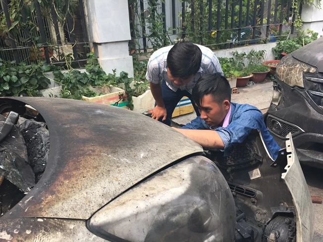 Nhiều ô tô và xe máy bị cháy và hư hỏng do vụ cháy vừa qua.