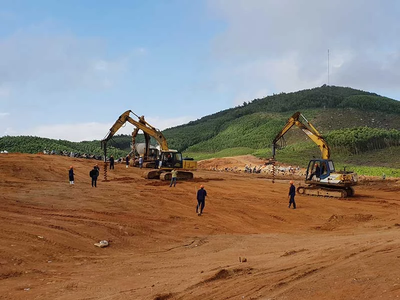 Đơn vị thi công san lấp mặt bằng dự án Nhà máy điện mặt trời Xuân Thọ 1. Ảnh: TẤN LỘC