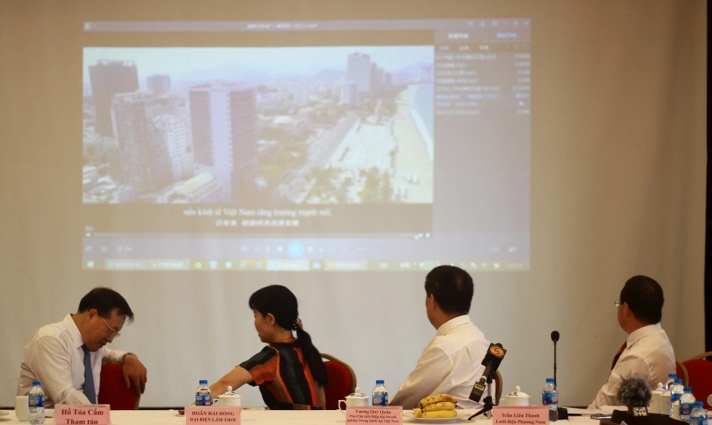 Đại sứ quán Trung Quốc gần đây bắt đầu tổ chức các cuộc gặp gỡ báo chí để chia sẻ thông tin. Trong buổi họp báo sáng nay (26-7), cơ quan đại diện ngoại giao đã mời ông Trần Liên Thanh, đại diện cho Công ty Lưới điện Phương Nam CSG, trao đổi một số vấn đề liên quan tới công trình nhiệt điện Vĩnh Tân 1, đặt tại tỉnh Bình Thuận.