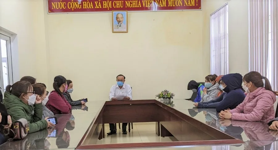 Công nhân Công ty T.B.O Vina tại buổi đối thoại với Chi cục THADS quận Liên Chiểu chiều 14-2. Ảnh: TL
