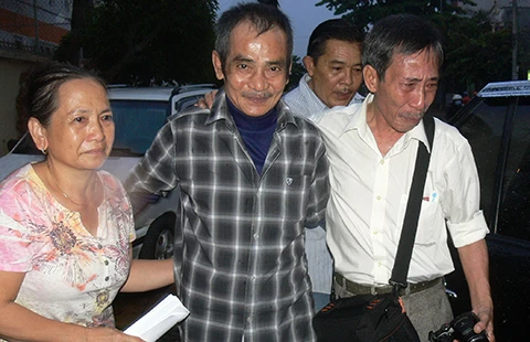 Ông Huỳnh Văn Nén (giữa) bên người thân trong ngày được trả tự do. Ảnh: PHƯƠNG NAM