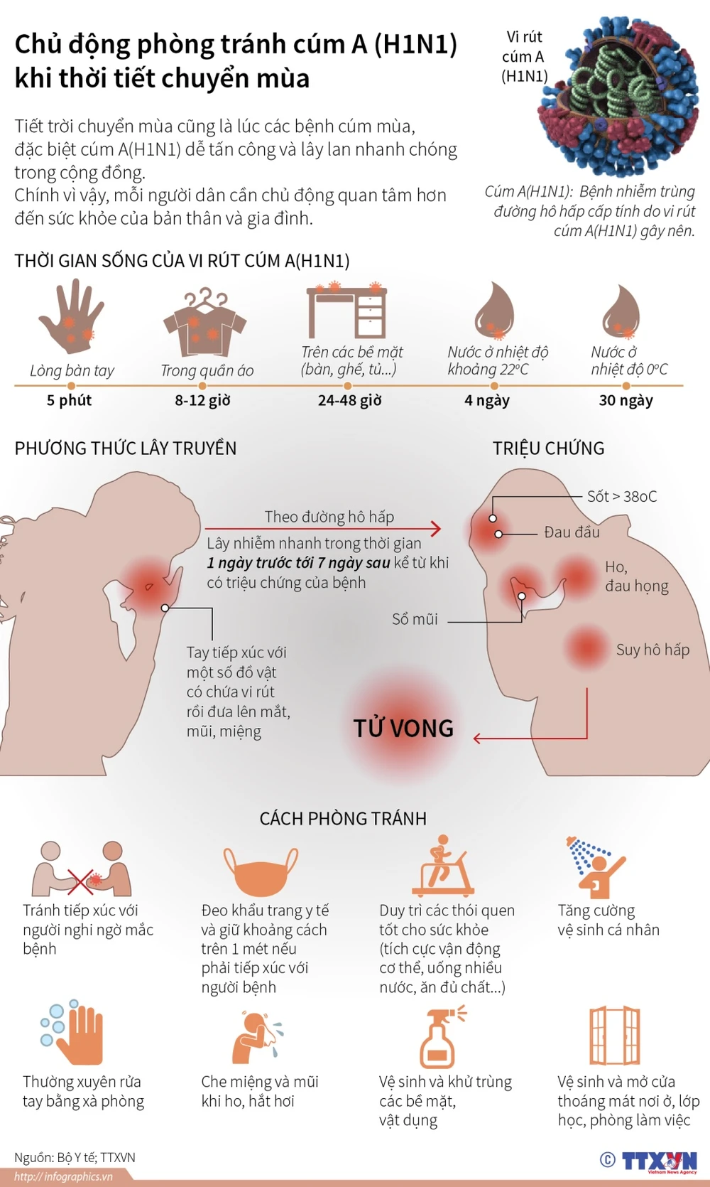 Infographic: Chủ động phòng tránh cúm A (H1N1) khi thời tiết chuyển mùa (Theo TTXVN)