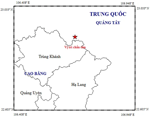 Đến 12 giờ 30 phút cùng ngày, trận động đất thứ ba có độ lớn 2.8 lại tiếp tục xảy ra tại tỉnh Quảng Tây (Trung Quốc), cách huyện Trùng Khánh của tỉnh Cao Bằng nước ta 1,6 km.