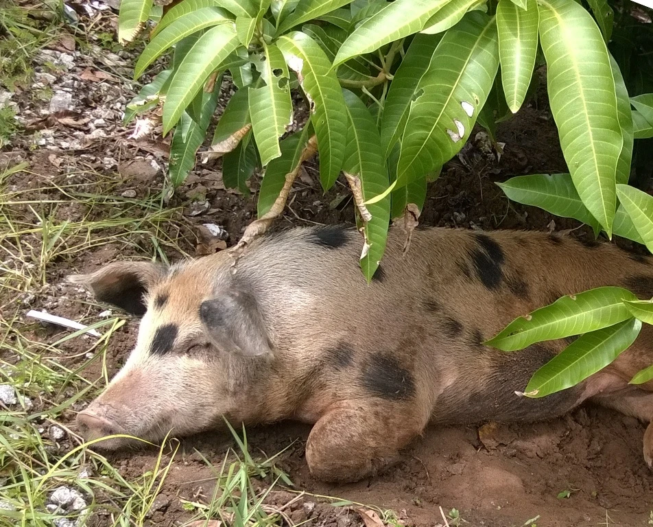 Do được ăn no, chú heo không đi lung tung, không phá phách, mà chỉ quanh quẩn tại một gốc xoài gần trụ Sở UBND xã. Chú heo cũng được tự do đi lại, không bị xỏ tai để quản lý như người dân địa phương vẫn thường làm trong trường hợp nuôi heo thả lang.
