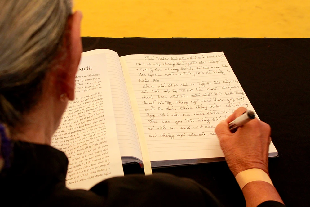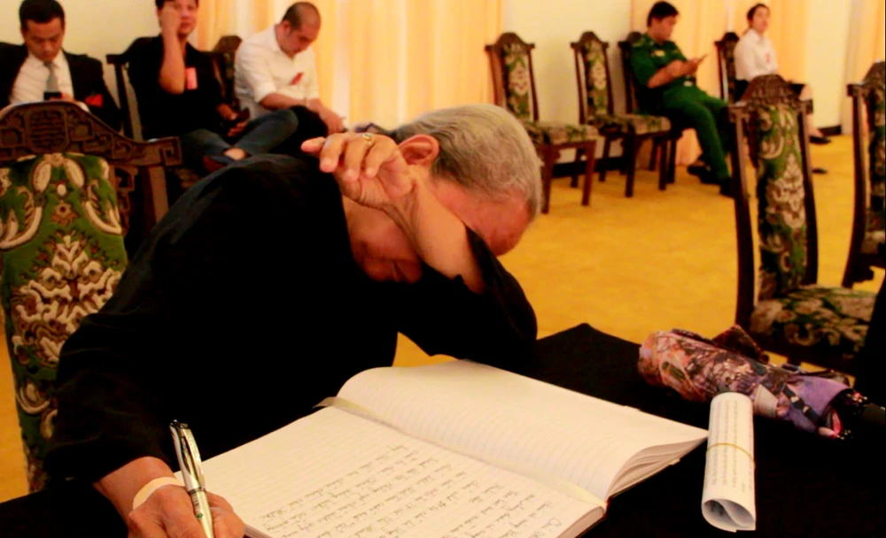 Bà Nguyệt đến, hòa vào một đoàn sở, ngành để viếng nguyên Tổng Bí thư rồi lặng lẽ vào giở sổ tang nắn nót từng dòng chữ trong sự xúc động nghẹn ngào.