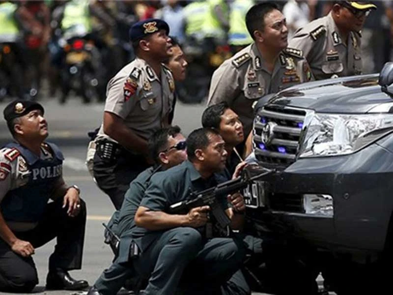 Lực lượng an ninh Indonesia luôn sẵn sàng trực chiến sau các vụ nổ bom. Ảnh: JAKARTA POST