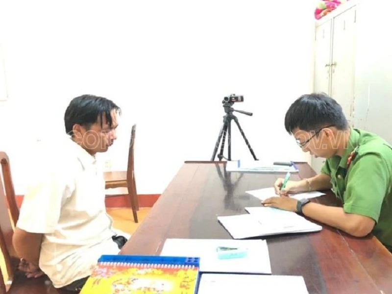 Nghi can Thành tại cơ quan công an. Ảnh: CAĐN