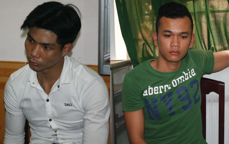 Hai nghi can Quang và Thức tại cơ quan công an. Ảnh: Vũ Hội