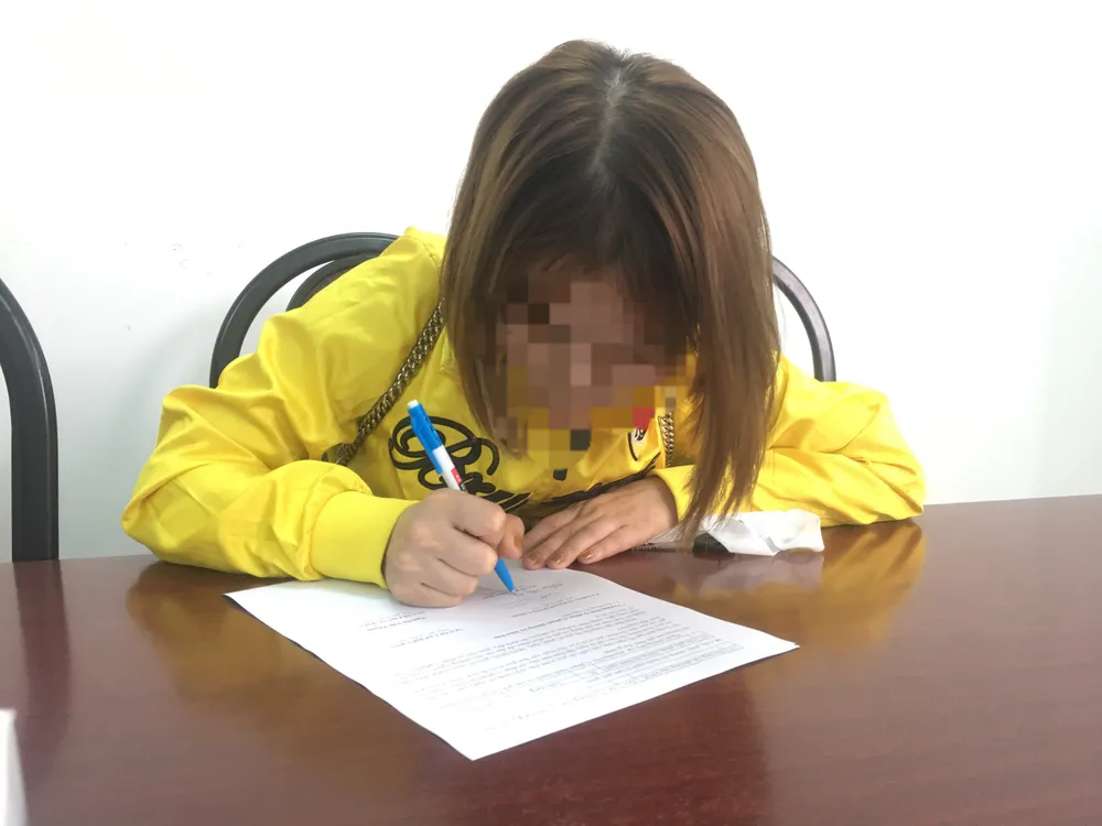 Bà CTNH ký biên bản vi phạm hành chính. Ảnh: HẢI DƯƠNG