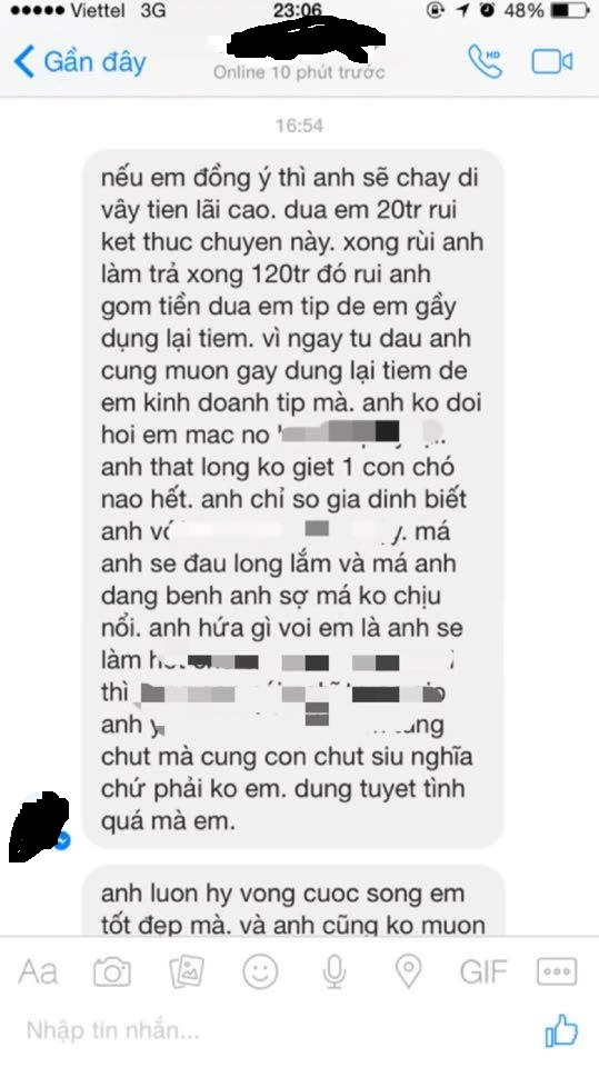 Tin nhắn Minh gửi cho Duy vào chiều 19-11.