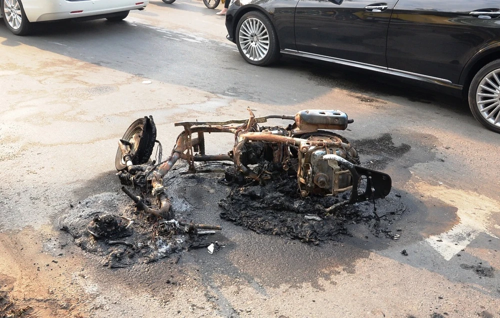 Khoảng 6 giờ ngày 15 – 4, người đàn ông cầm lái chiếc tay ga Attila từ huyện Bình Chánh về quận 7. Khi chạy trên đường Nguyễn Văn Linh (đoạn giao Nguyễn Hữu Thọ, phường Tân Phong, quận 7, TP.HCM) thì thấy tín hiệu giao thông chuyển sang màu đỏ đã dừng lại. Người đàn ông thấy phần máy của xe xông khói. Lửa bùng nhanh. Lúc này, anh nhảy ra khỏi phương tiện thoát thân cùng tri hô nhờ giúp đỡ và lấy áo khoác để dập lửa nhưng bất thành.