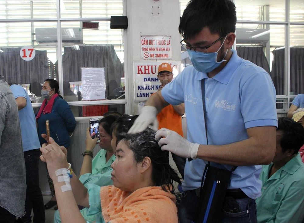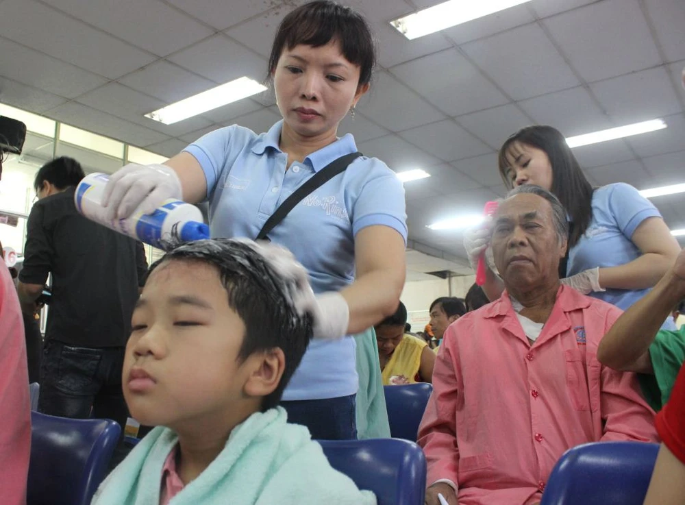 Các bệnh nhân cảm thấy thoải mái khi được gội đầu. Ảnh: HL.LAN