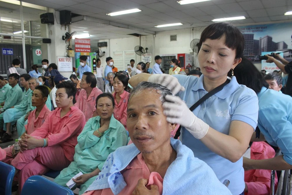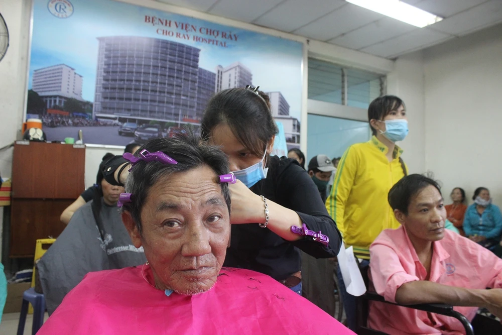 “Cắt tóc xong thấy nhẹ cả đầu, khỏe khoắn, nhẹ nhõm, thoải mái hẳn ra” - bà Nguyễn Thị Thạch (59 tuổi, ngụ Tây Ninh) bày tỏ khi được một bạn tình nguyện viên hớt tóc miễn phí tại chương trình “Chủ nhật chia sẻ yêu thương” do phòng Công tác xã hội của BV Chợ Rẫy tổ chức sáng 18-3. Đến với chương trình này, hàng trăm bệnh nhân của BV Chợ Rẫy đã được cắt tóc, gội đầu miễn phí và xem các tiết mục văn nghệ.