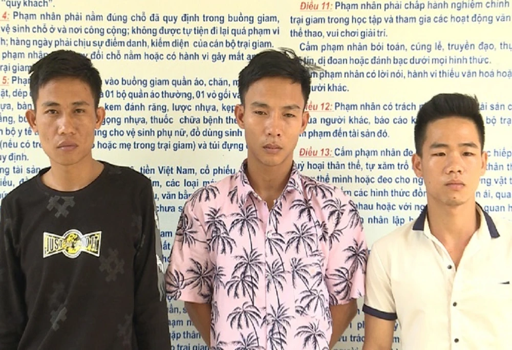 Các đối tượng tại cơ quan công an. (Ảnh do công an cung cấp)