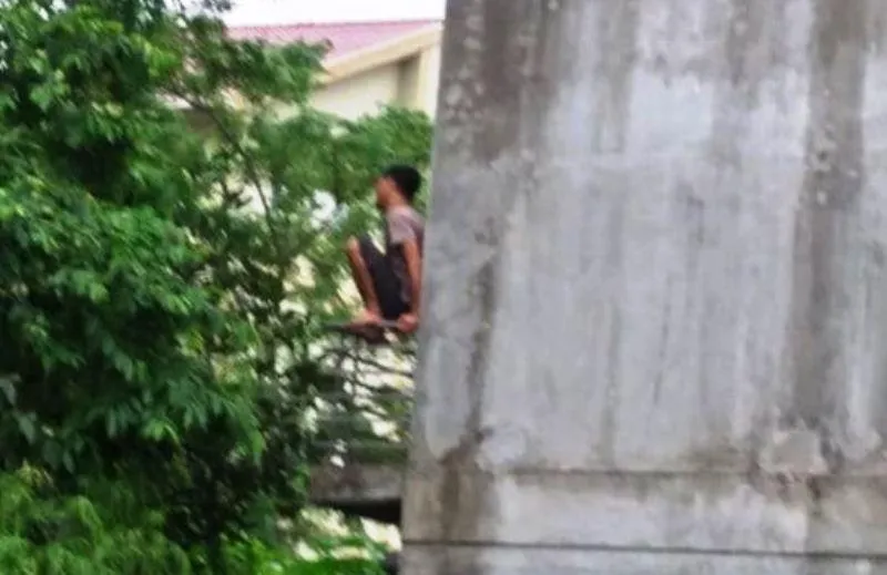 Anh D. nghi ngáo đá ngồi trên ban công tầng 2 nhà người dân ở phường Hưng Dũng (TP Vinh, Nghệ An).