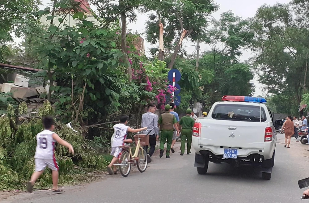 Công an phường Hưng Dũng, Công an TP Vinh và Cảnh sát cơ động, Công an tỉnh Nghệ An đã có mặt tại hiện trường khuyên nhủ anh D. xuống nhưng anh vẫn không xuống mà đứng nói, hai tay “múa”. Rất đông người dân đứng xung quanh đường và ngôi nhà theo dõi sự việc.