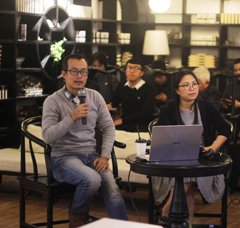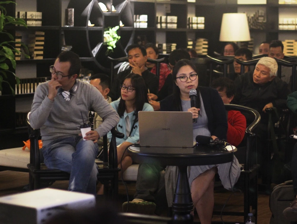 TS Trần Trọng Dương (trái) trình bày tại buổi tọa đàm. Ảnh: V.THỊNH