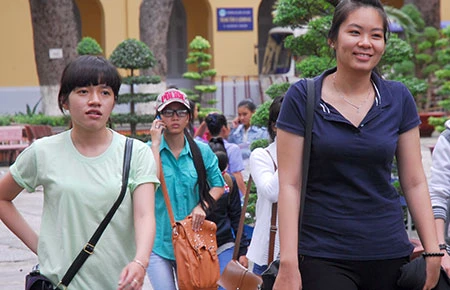Thí sinh tự tin sau giờ thi tại Trường ĐH Sài Gòn. Ảnh: HTD