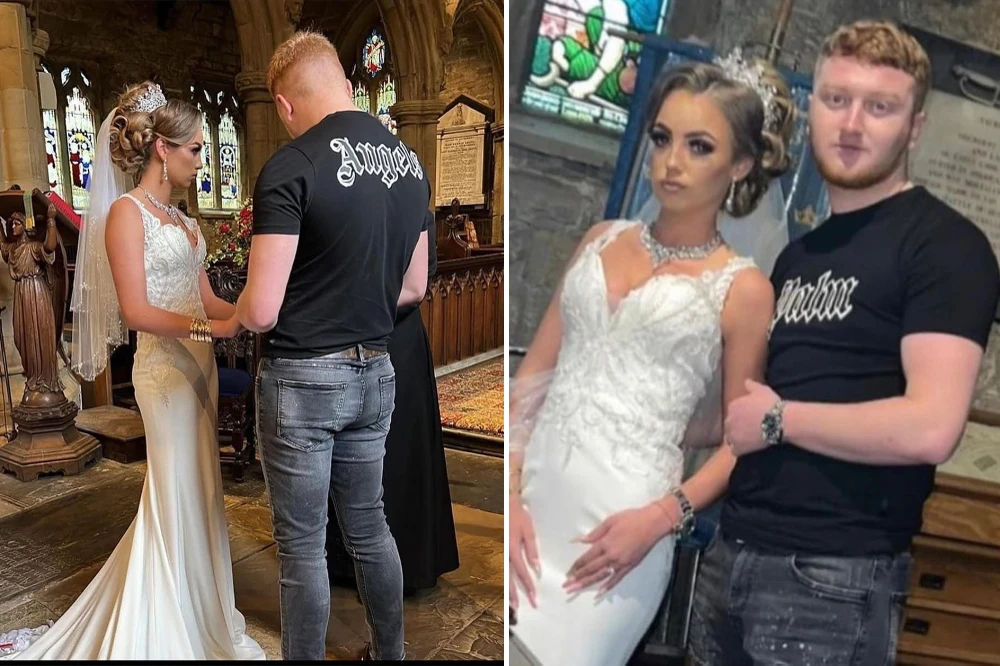 Một chú rể người Anh đang bị cộng đồng mạng chỉ trích không thương tiếc khi mặc mỗi một chiếc áo thun và quần jeans bạc màu trong lễ cưới, trong khi cô dâu lại vô cùng chỉn chu cùng bộ váy cưới lộng lẫy.