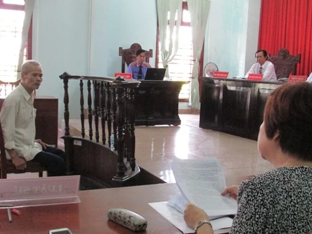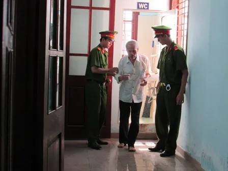 Tòa tuyên án. Do sức khỏe yếu nên khi nghe tòa tuyên phạt, phải có hai người hỗ trợ bị cáo mới đứng dậy được. Ảnh: N.NAM