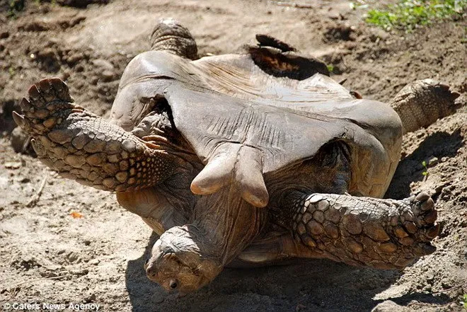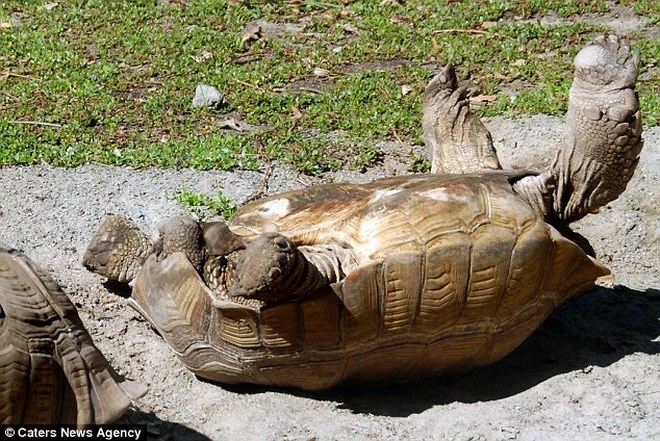 Chú rùa đã nằm ngửa trong suốt 15 phút trước khi trở lại trạng thái bình thường. (Nguồn: Caters News Agency)