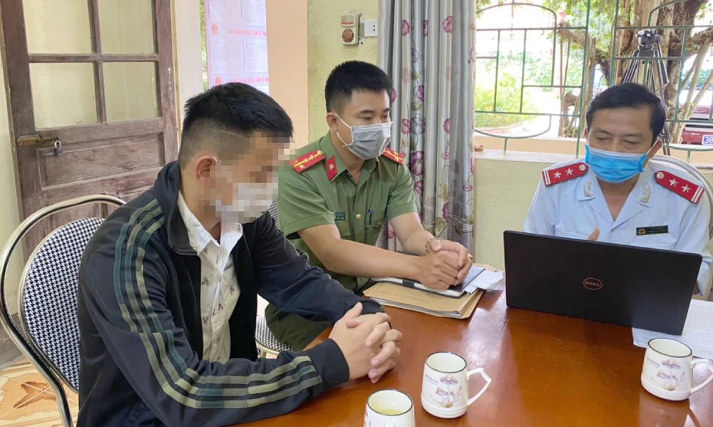 Thanh tra Sở TT&TT Hà Tĩnh và cán bộ Phòng An ninh chính trị nội bộ, Công an tỉnh Hà Tĩnh làm việc với anh H. Ảnh: Cổng thông tin điện tử tỉnh Hà Tĩnh.