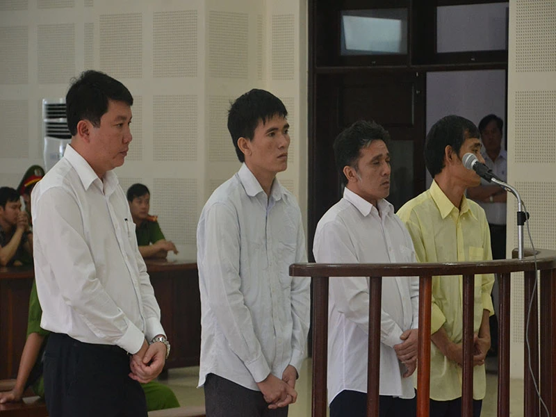 Bốn bị cáo đang nghe tòa tuyên án. Ảnh: N.TRI