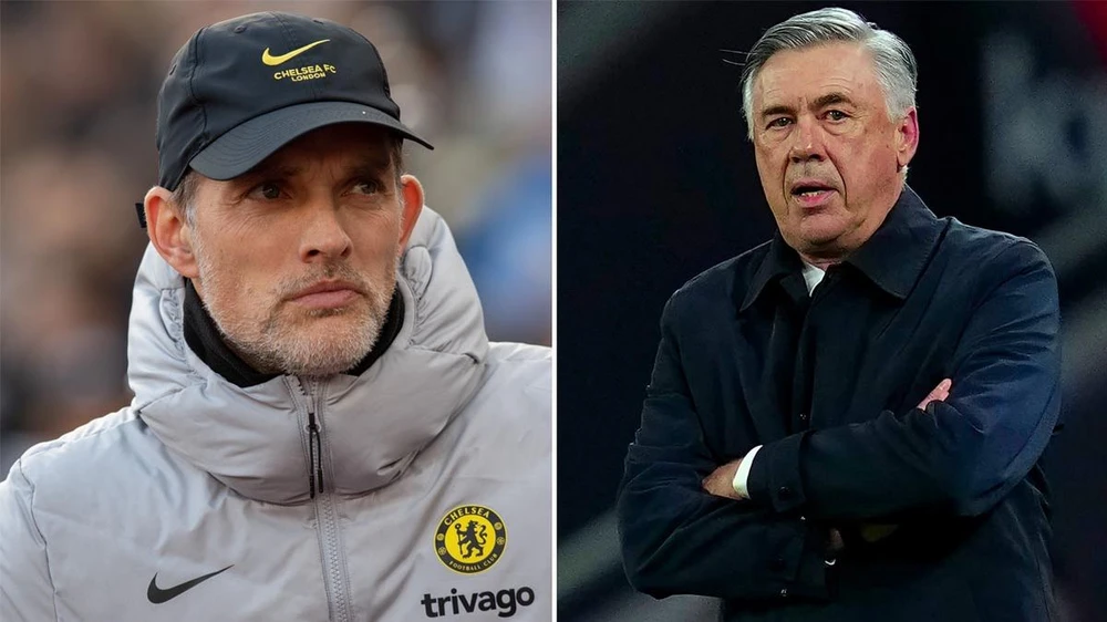Tuchel là HLV hiện tại của Chelsea, còn Ancelotti trước đây từng dẫn dắt Chelsea. ẢNH: MIRROR