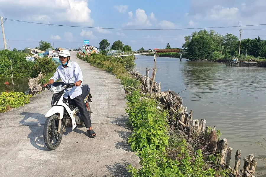 Nếu người dân không kè chống sạt lở thì nhiều đoạn lộ trên kênh Quảng Thép đã bị sạt lở xuống kênh. Ảnh: TRẦN VŨ