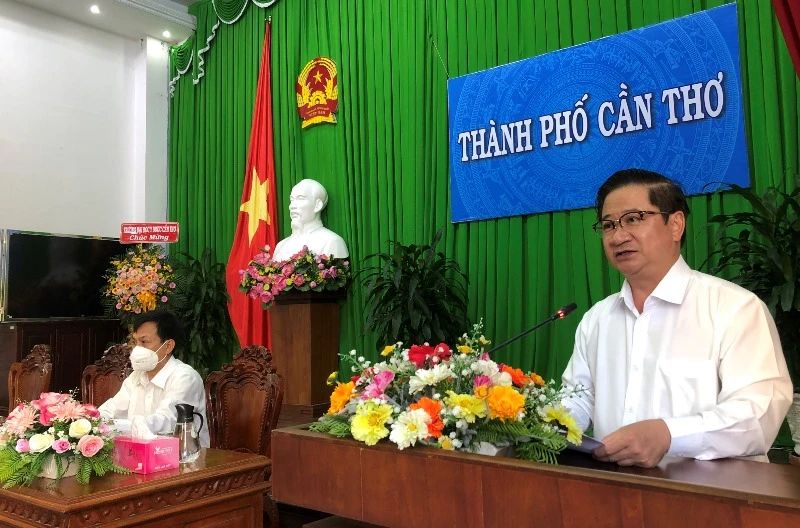 Chủ tịch UBND TP Cần Thơ Trần Việt Trường phát biểu tại cuộc họp thường kỳ chiều ngày 26-1. Ảnh: NHẪN NAM