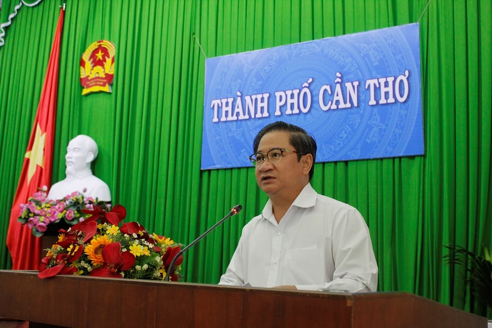 Chủ tịch UBND TP Cần Thơ Trần Việt Trường phát biểu kết luận tại cuộc họp chiều 4-6. Ảnh: NHẪN NAM