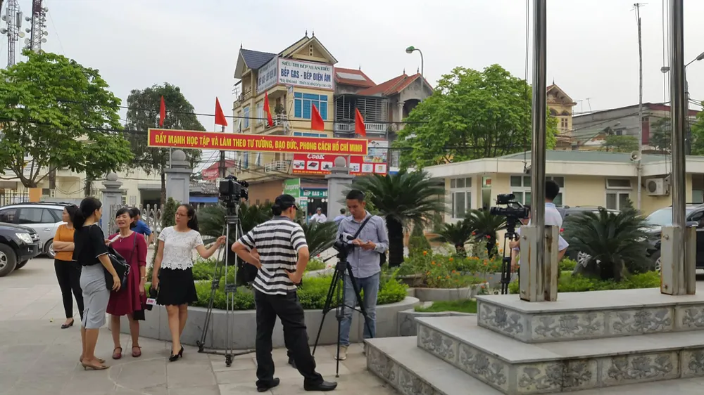 Đông đảo PV báo chí đang có mặt tại UBND huyện Mỹ Đức để đưa tin. Ảnh: NN