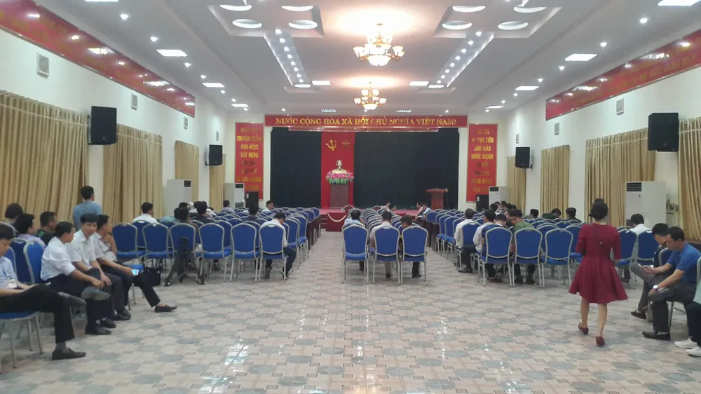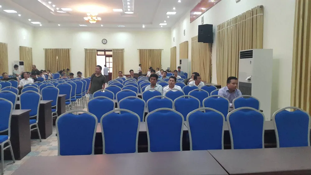 Hội trường được chuẩn bị cho cuộc đối thoại đến giờ này vẫn trống trơn vì người dân Đồng Tâm chưa đến. Ảnh: NN