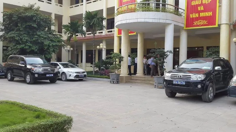 Nhiều xe của Thành ủy, UBND Hà Nội về huyện ủy Mỹ Đức làm việc. Ảnh: NN
