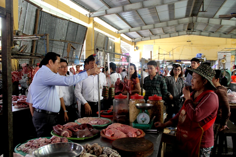 Chủ tịch TP Đà Nẵng Huỳnh Đức Thơ thị sát chợ An Hải Bắc và cho rằng cần có sự tham gia của tư nhân vào quá trình xây dựng chợ. Ảnh: N.TRI