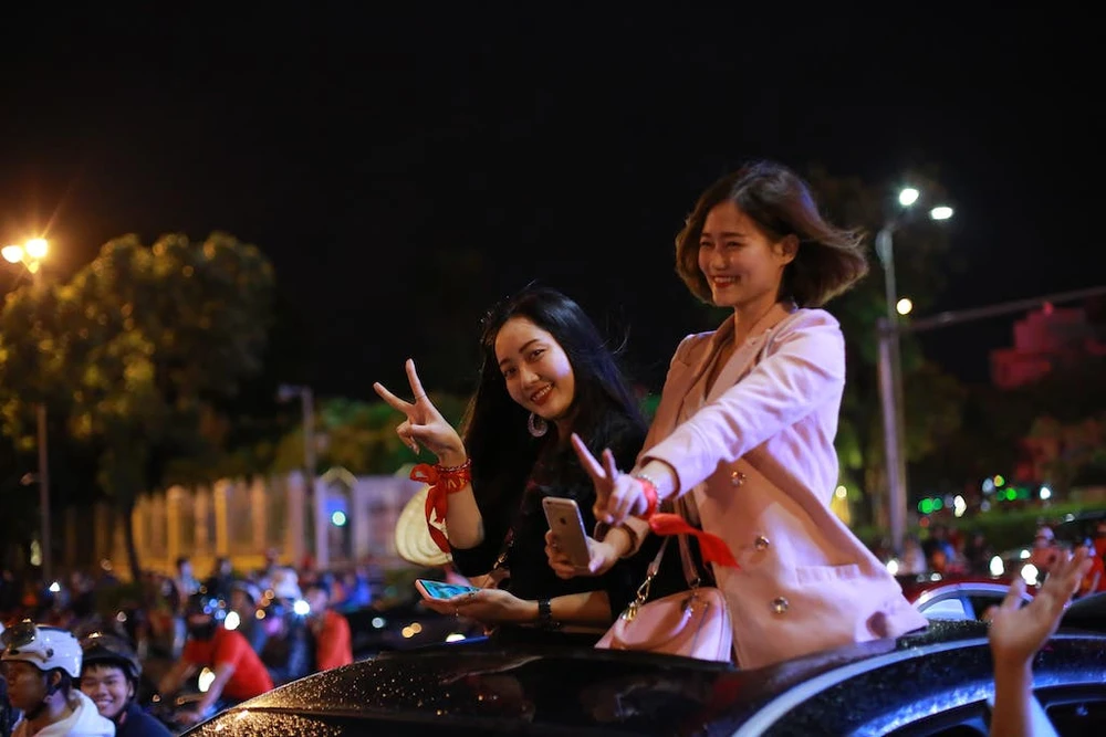 Các bạn trẻ Đà Nẵng ra đường cổ vũ bóng đá. Ảnh: HẢI HIẾU
