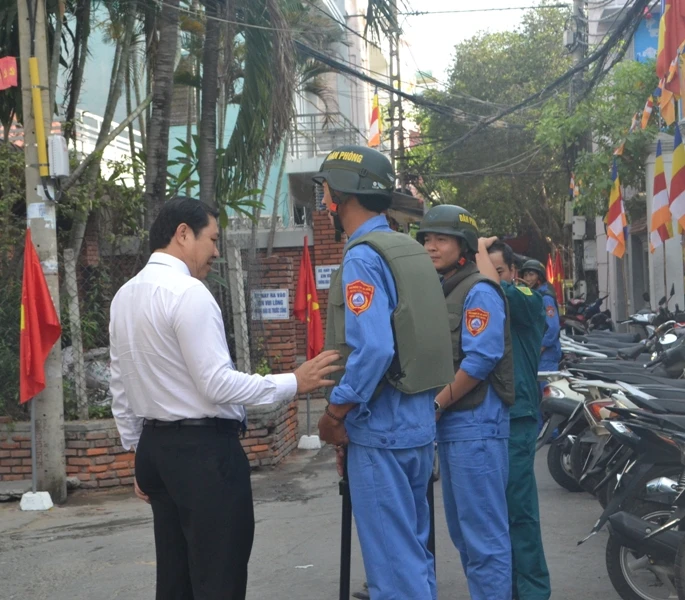 Ông Thơ động viên các lực lương an ninh, bảo vệ bầu cử. Ảnh: TT