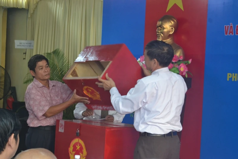 Sau khi thực hiện các bước theo quy định, hai cử tri không tham gia ứng cử lần này đã tiến hành kiểm tra hòm phiếu.